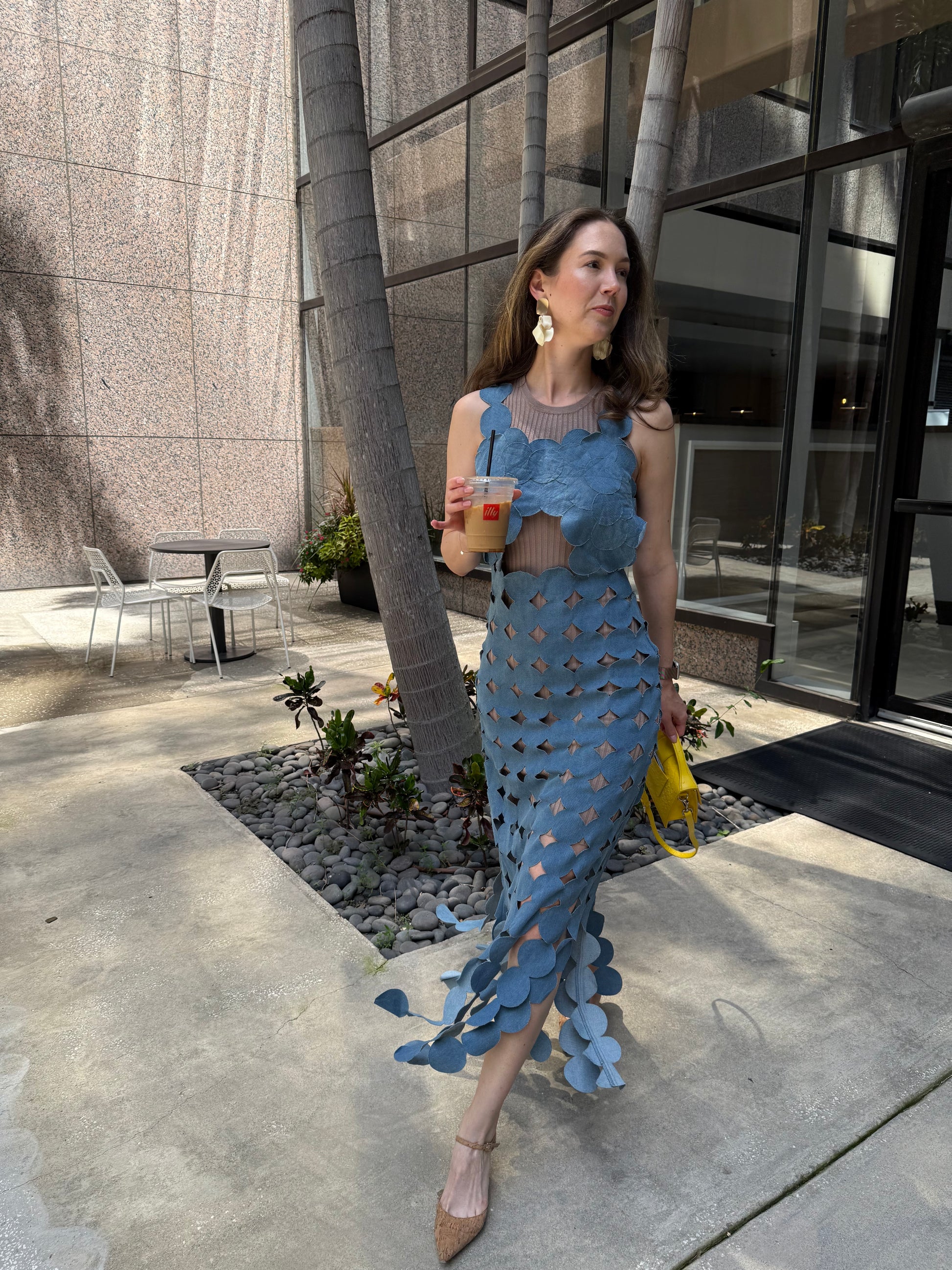 Halter top maxi dress featuring chic circular cutouts across the bodice, designed for a bold and sophisticated statement look.