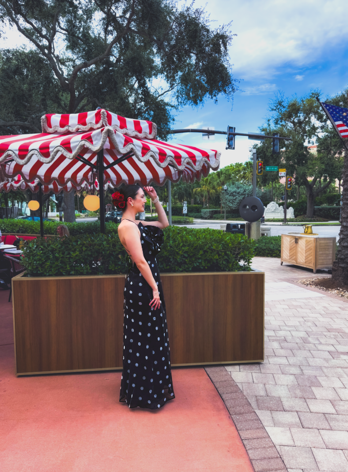 POLKA DOT FLORAL MAXI DRESS SELF : 100%POLYESTER LINING : 100%POLYESTER
